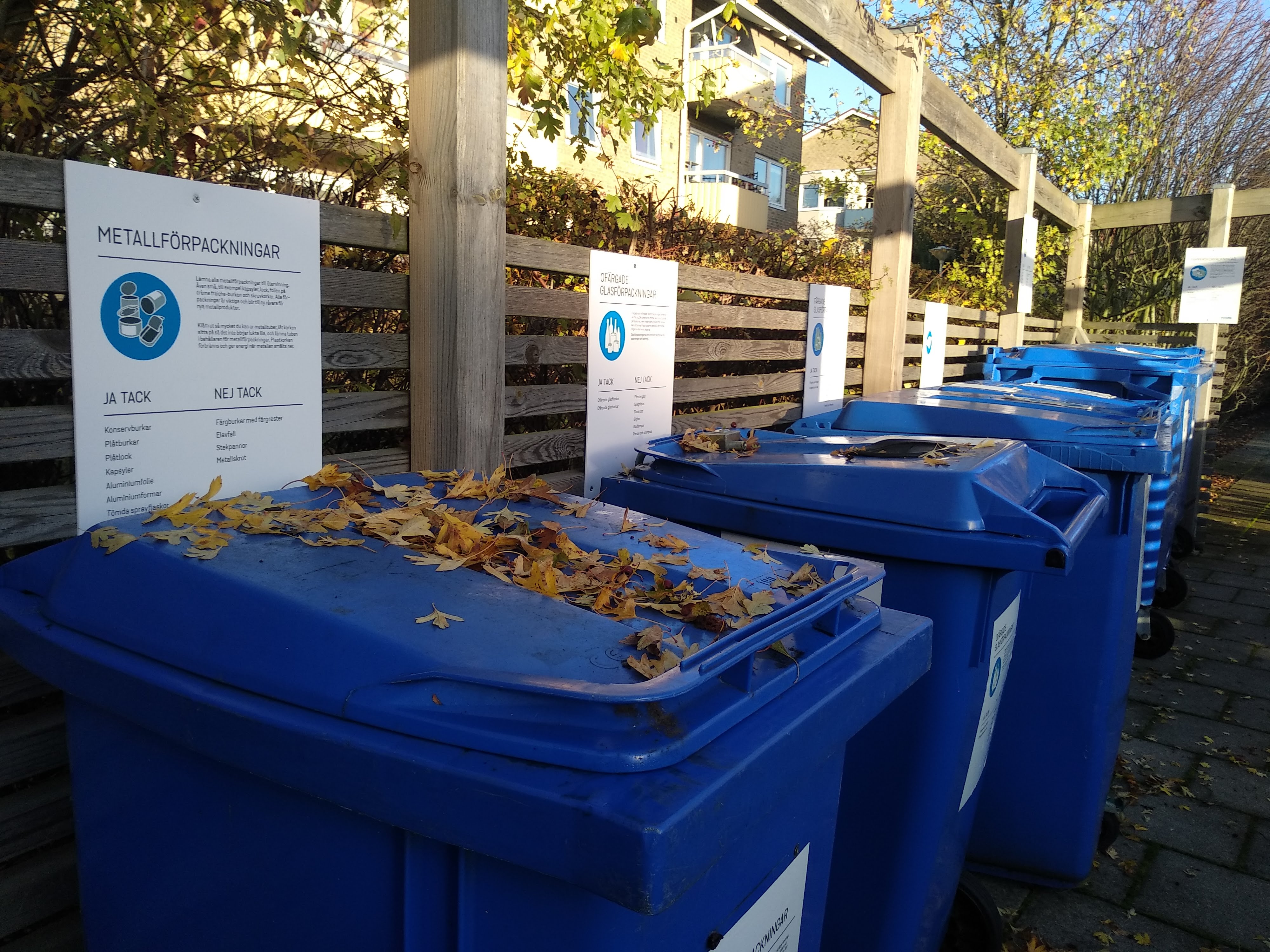 Ta gärna en extra titt på skyltarna och läs vad som får och inte får slängas i respektive tunna.