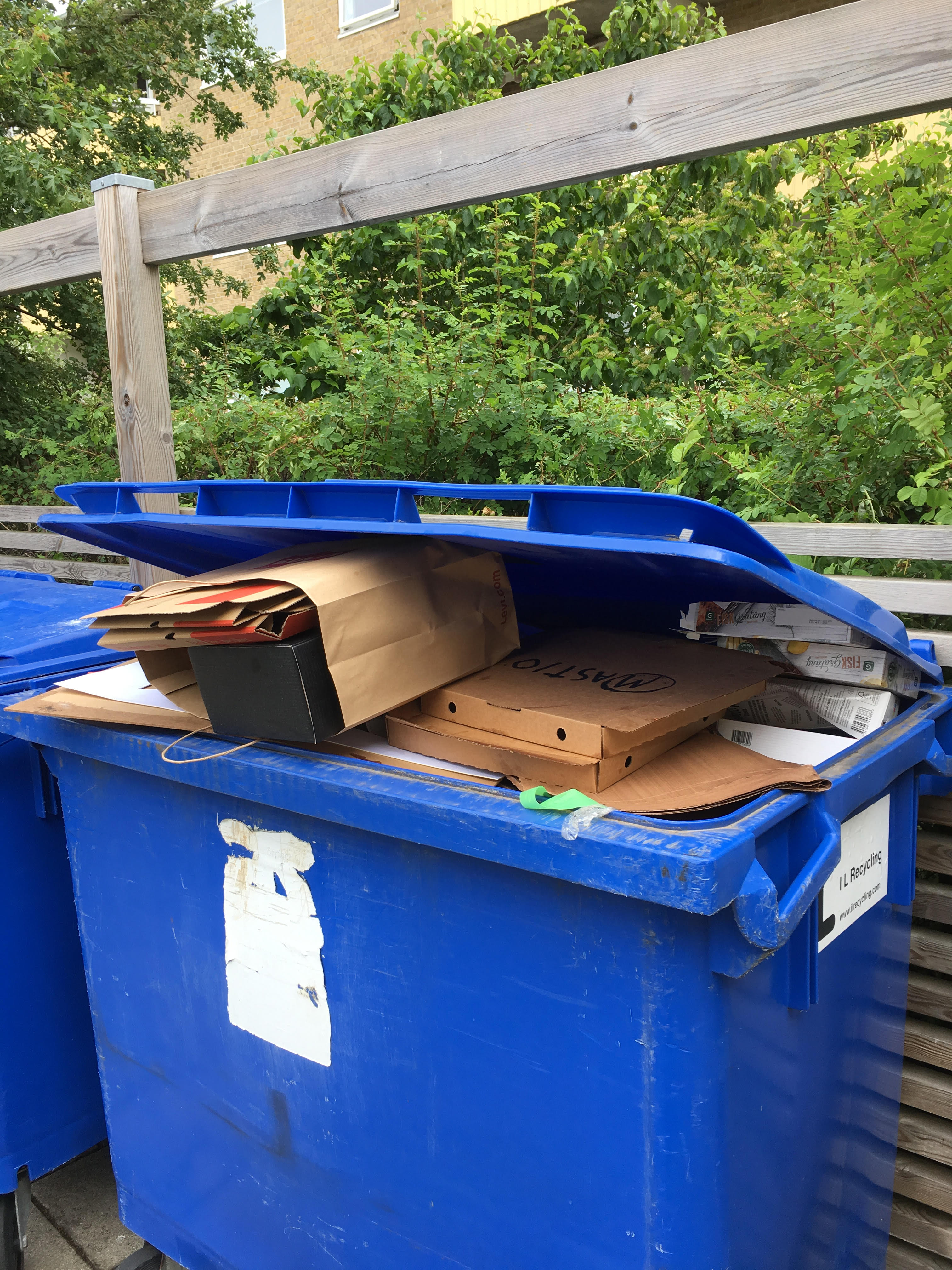 Många pizza älskare i föreningen? Sophämtarna tar inte kärl med topping, kan vi försöka klämma ihop kartongerna ännu mer?